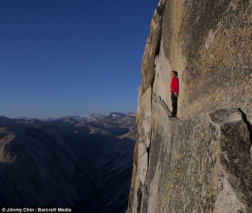 No fear: Free climber Alex Honnold re-enacts his ropeless ascent of the 2,500ft north-west face of the Half Done in Yosemite National Park.